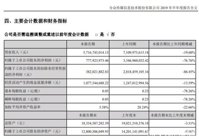 在這樣的背景之下,分眾傳媒上半年實現(xiàn)營業(yè)收入57.17億元,相比較于2018年同期的71.1億元下降19.61%;實現(xiàn)凈利潤7.78億元,相比較于2018年同期的33.47億元下降76.76%。