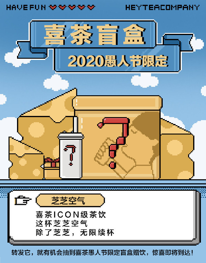 喜茶愚人節(jié)盲盒限時上線,【啥也不是波波冰】、【芝芝空氣】、【滿杯快樂】、【多肉喜歡有