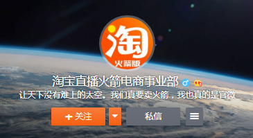 今天淘寶成立火箭事業(yè)部,即將在淘寶直播間賣火箭。
